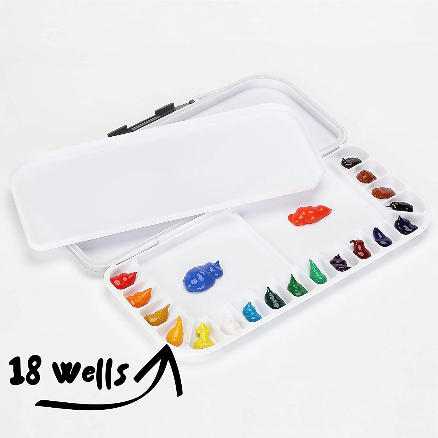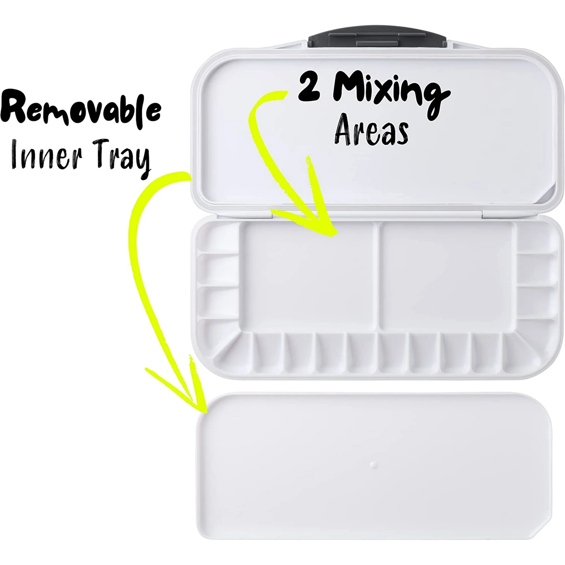 Mr. Pen's 18-Well Airtight Watercolor Palette measures 5.2" x 10.6" and has a removable mixing tray. The airtight seal keeps your paint fresh for many paint sessions.