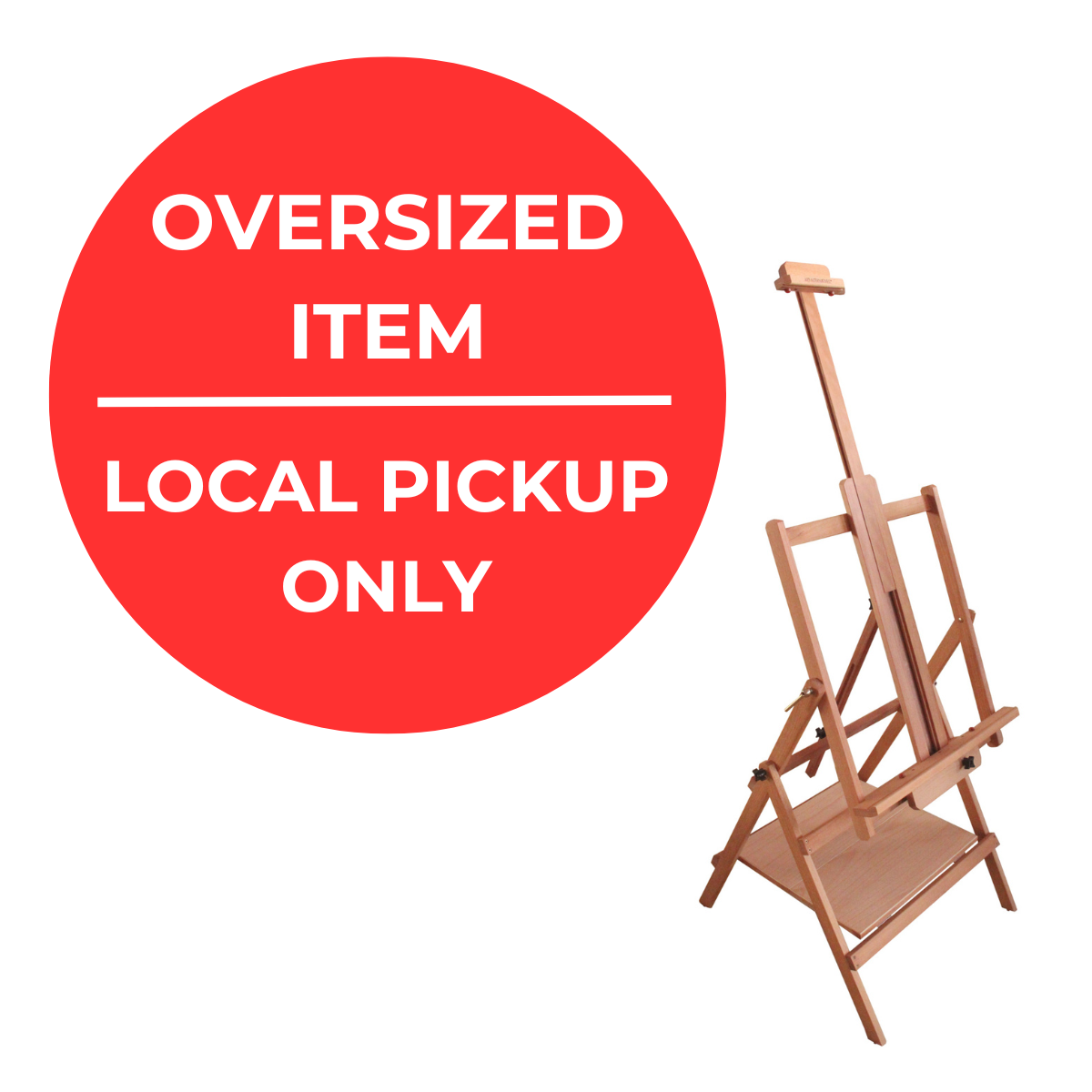 This versatile studio easel adjusts to any inclination from upright to horizontal. Ideal for use with any media, including watercolor. It accommodates canvases up to 45". The stable design also features a large storage platform for supplies. Constructed of hand-finished beechwood. Weighs 19 lbs. The height adjusts from 54"-72.5" and the base measures 23.5"W x 27.25"D. Some assembly required. Instructions are included.